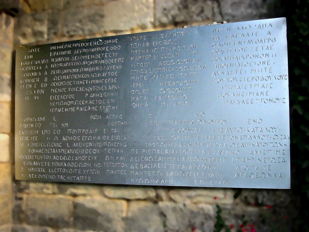 Le texte a été dessiné au 1/10 avec une pointe rotring de 1,0, scanérisé, puis gravé en automatique en deux fois deux passes. Les endroits non gravés de la plaque correspondent aux parties effacées de l’original.