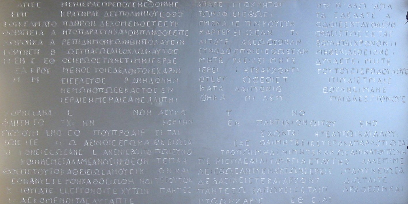 Turquie – Anatolie – Nemrut – Dagi – Testament d’Antiochos gravé au pied de 5 sculptures colossales en granit.