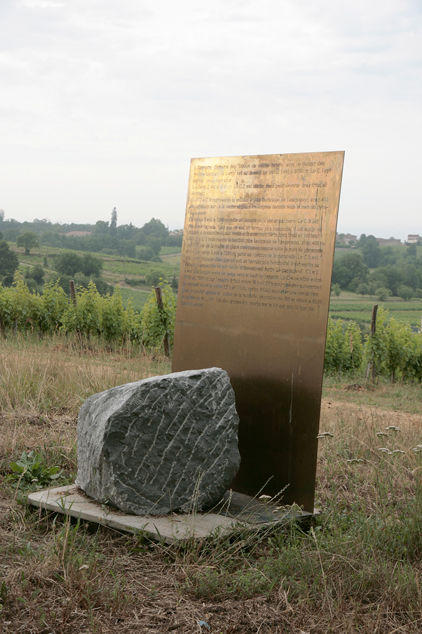 Densité 3, marbre d’Arudy, Pyrénées (55x55x55 cm) sur plaque de laiton percée.