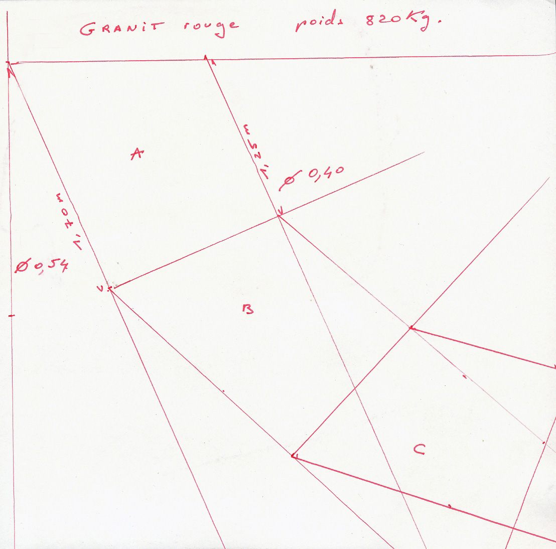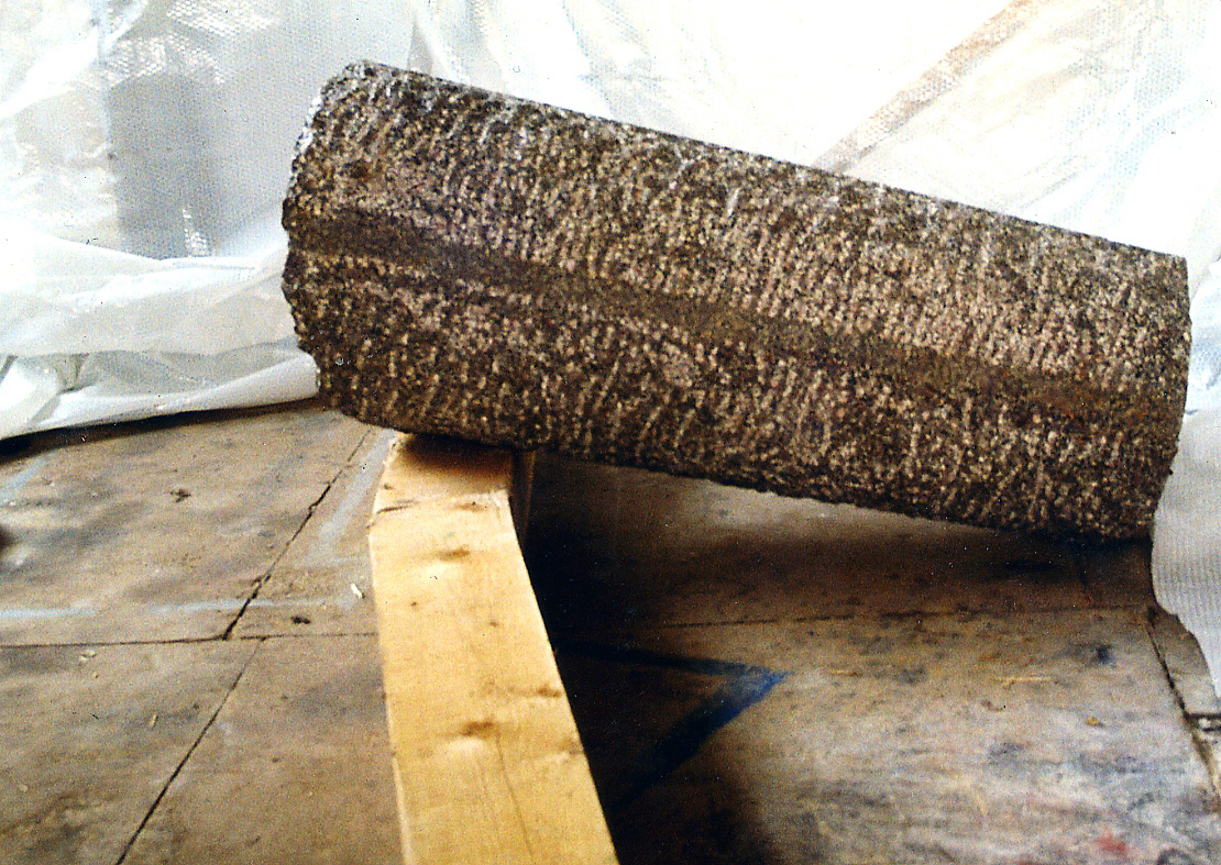 Le « rouleau », un tronc de cône de granit rouge d’environ 1,3 m de long, d’un diamètre de 0,54 m pour la grande base et de 0,40 m pour la petite base et d’un poids de quelque 820 kg.
